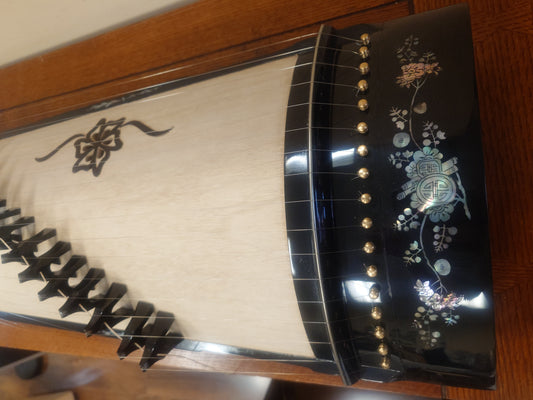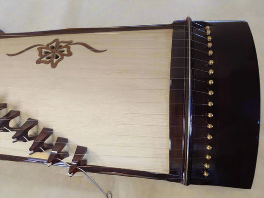 The dan tranh, a Vietnamese zither, is cherished for its elegant design and captivating sound. Traditionally featuring 16 strings, modern versions of the dan tranh can have up to 21 or 25 strings, allowing for a broad range of musical expression. Each string is individually tuned, producing a rich, melodic tone that can evoke the beauty of Vietnam’s landscapes and cultural heritage.