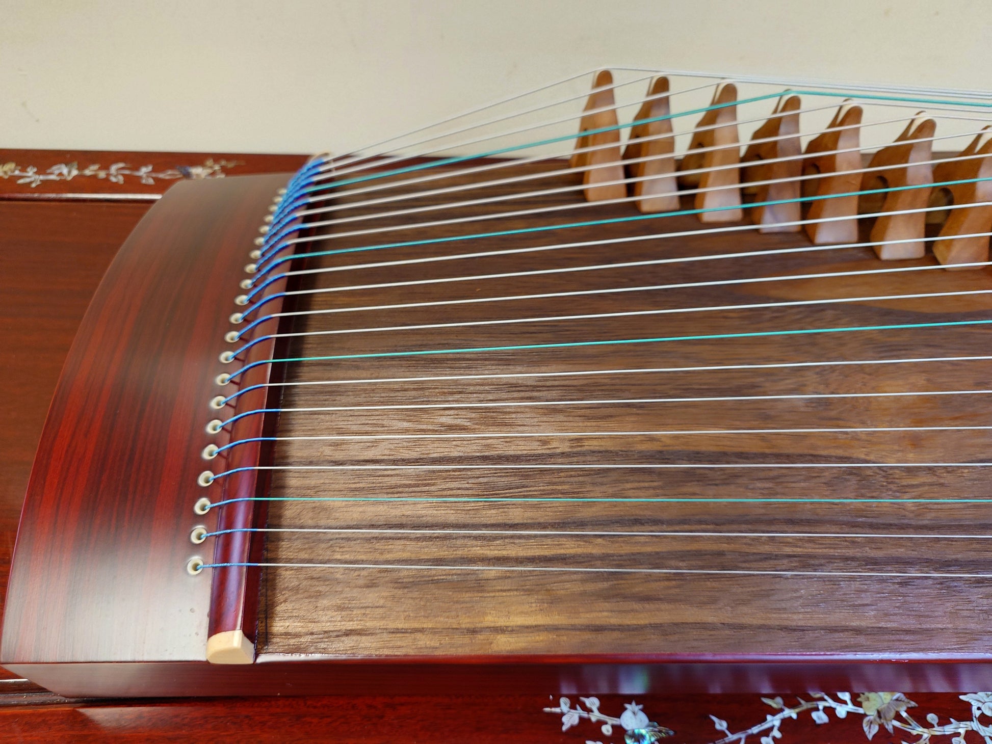 “韵”使用红木侧板、泡桐面板、硬木筝码。筝体设计经过改良,音质好共鸣佳,不似一般小古筝音色干涩。此筝音色清甜,方便携带,适合需要经常旅行的筝友。附赠古筝专用调音器、后禙软包、指甲、1-7备用弦(不带筝架)。