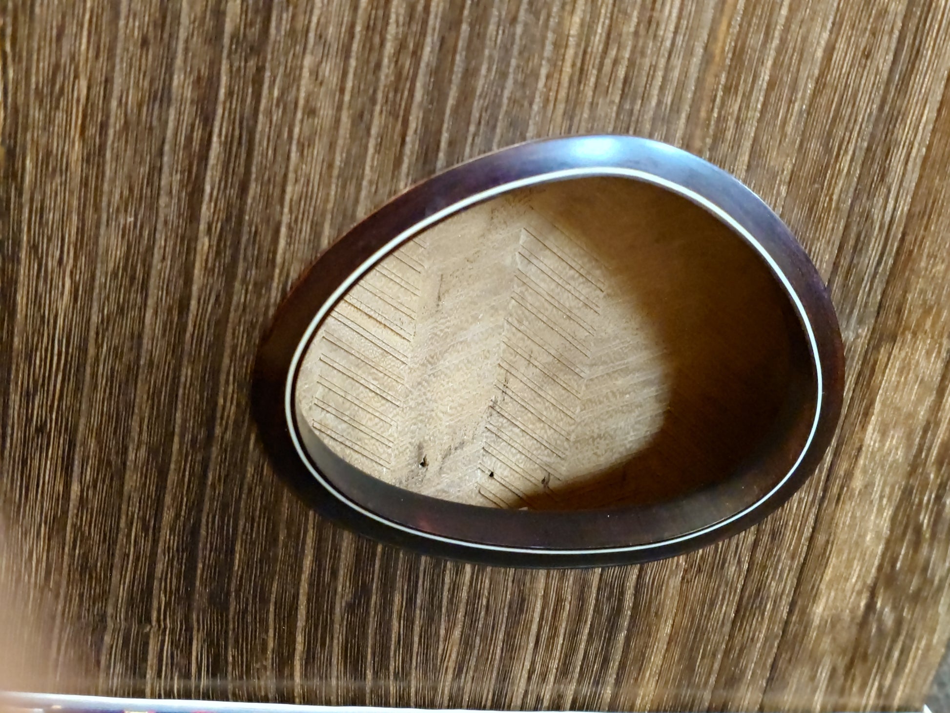 This exceptional koto is carefully crafted with hand-carved Ayasugi grooves, designed to maximize tonal complexity and responsiveness. To further improve sound quality, the inside of the soundboard is hollowed and shaped by hand, with carving adjusted based on the weight and characteristics of the wood. The result is a confident, expressive instrument with refined detail and strong musical presence.