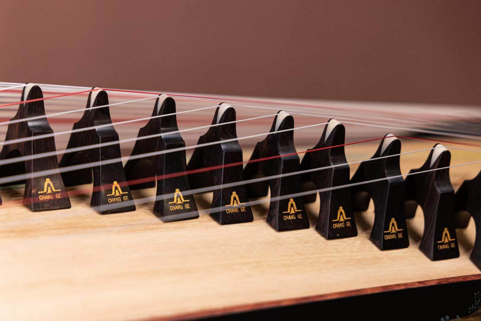 This beautiful instrument, "Landscape Scenery," is handmade by Master Zhang Bing, the senior maker from the Scarlet Bird (Zhuque) Factory. It is crafted from paulownia wood that has been naturally air-dried for a minimum of ten years. The frame is made with aged Thai Rosewood. The sound is perfect in every range, with a crystal clean tone and solid resonance across the strings, retaining Scarlet Bird's famous warm and deep voice.
