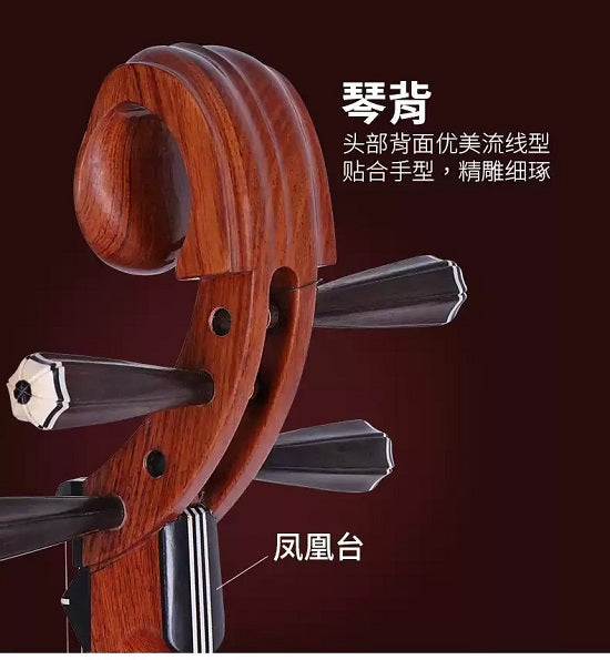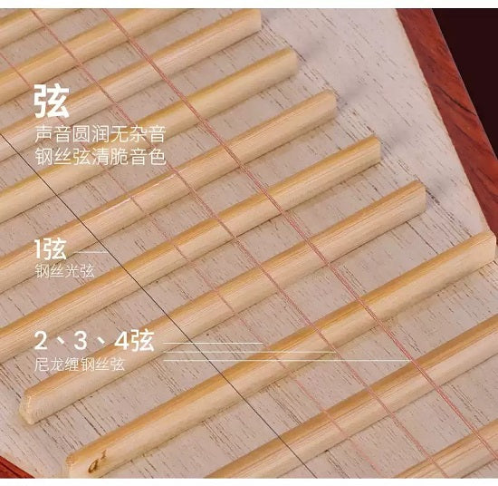 This pipa comes with a set of finger picks, a hard case for secure transport, and spare strings, providing everything you need to maintain and protect this exceptional instrument. Each pipa features a unique, hand-crafted pattern on the backboard, adding to its distinctiveness and value. Trust in Dunhuang's reputation for excellence to enhance your musical collection.