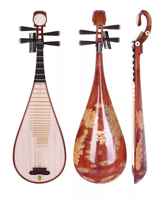 敦煌牌545M高档专业演奏琵琶(缅酸枝/老红木相轸/清水嵌镶式)