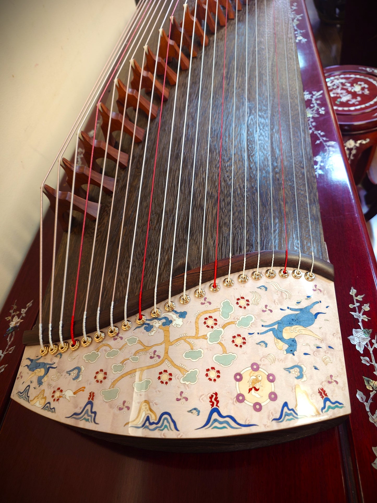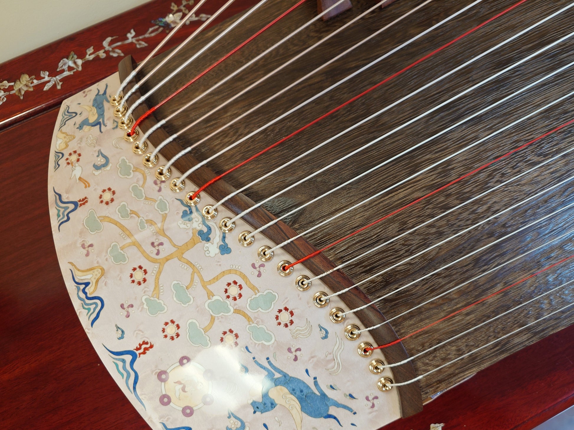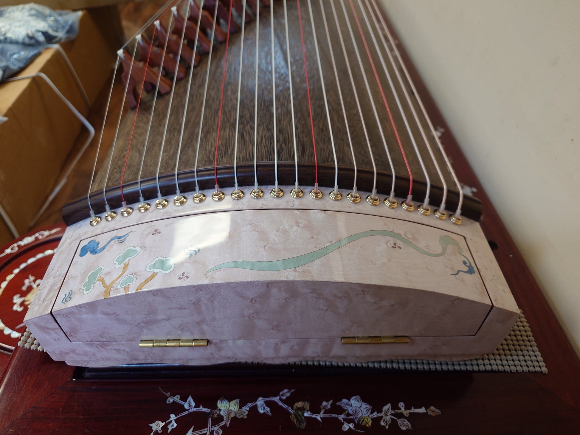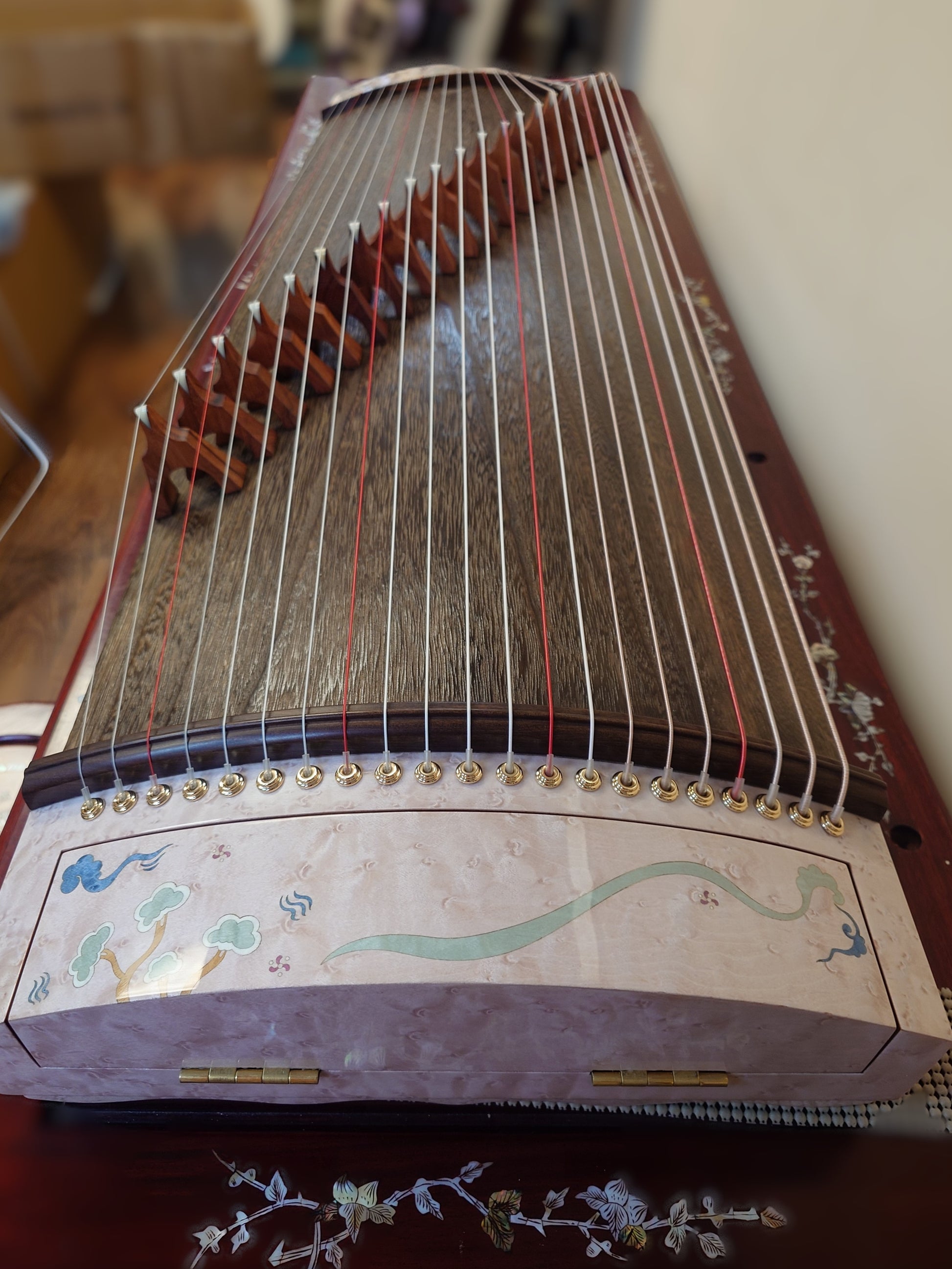 Outfitted with Daishi B strings and Red Sanders bridges, this guzheng offers crisp trebles and a surprisingly warm, focused bass—ideal for practice, travel, or performance in intimate settings.