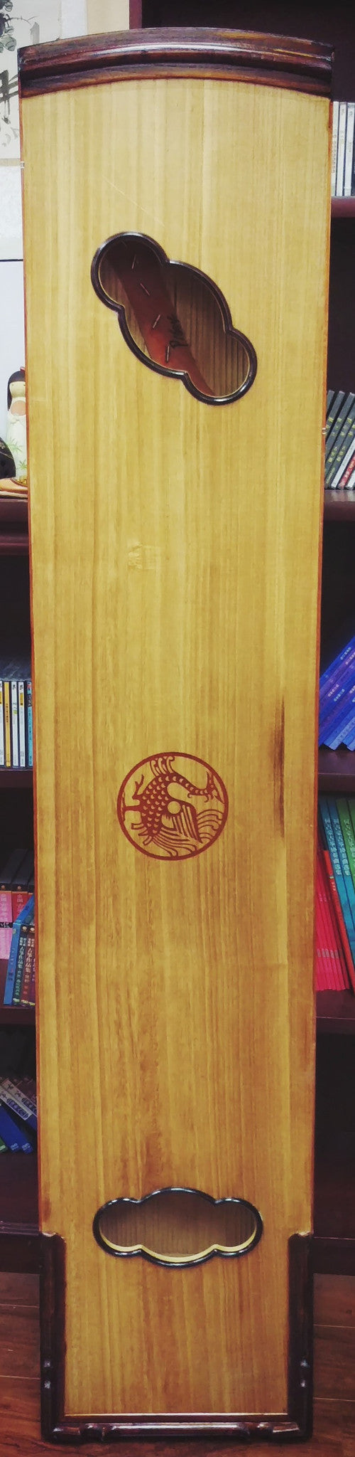 The design of its body structure is unique. The body board, made from paulownia (pao-tong) wood that naturally grows in Henan Province, is hollowed out in the middle to improve sound quality. This process uses almost an entire tree to make one guzheng.