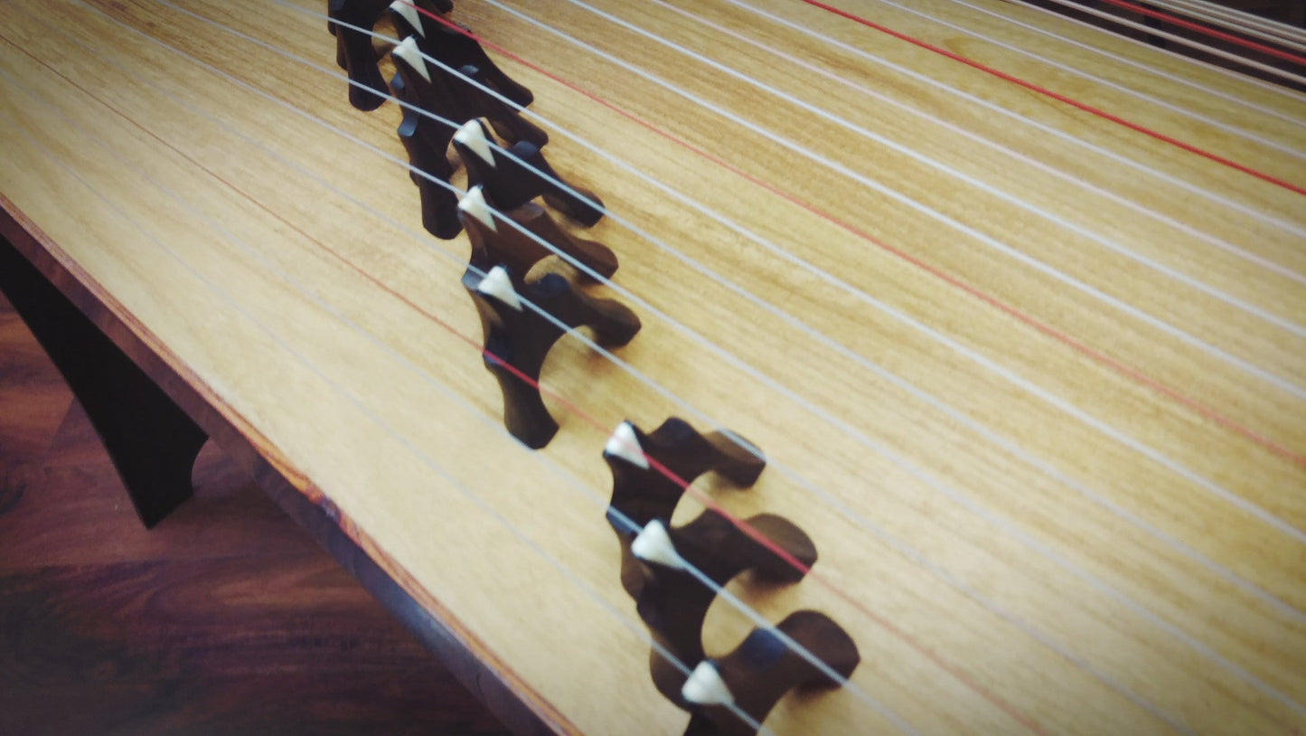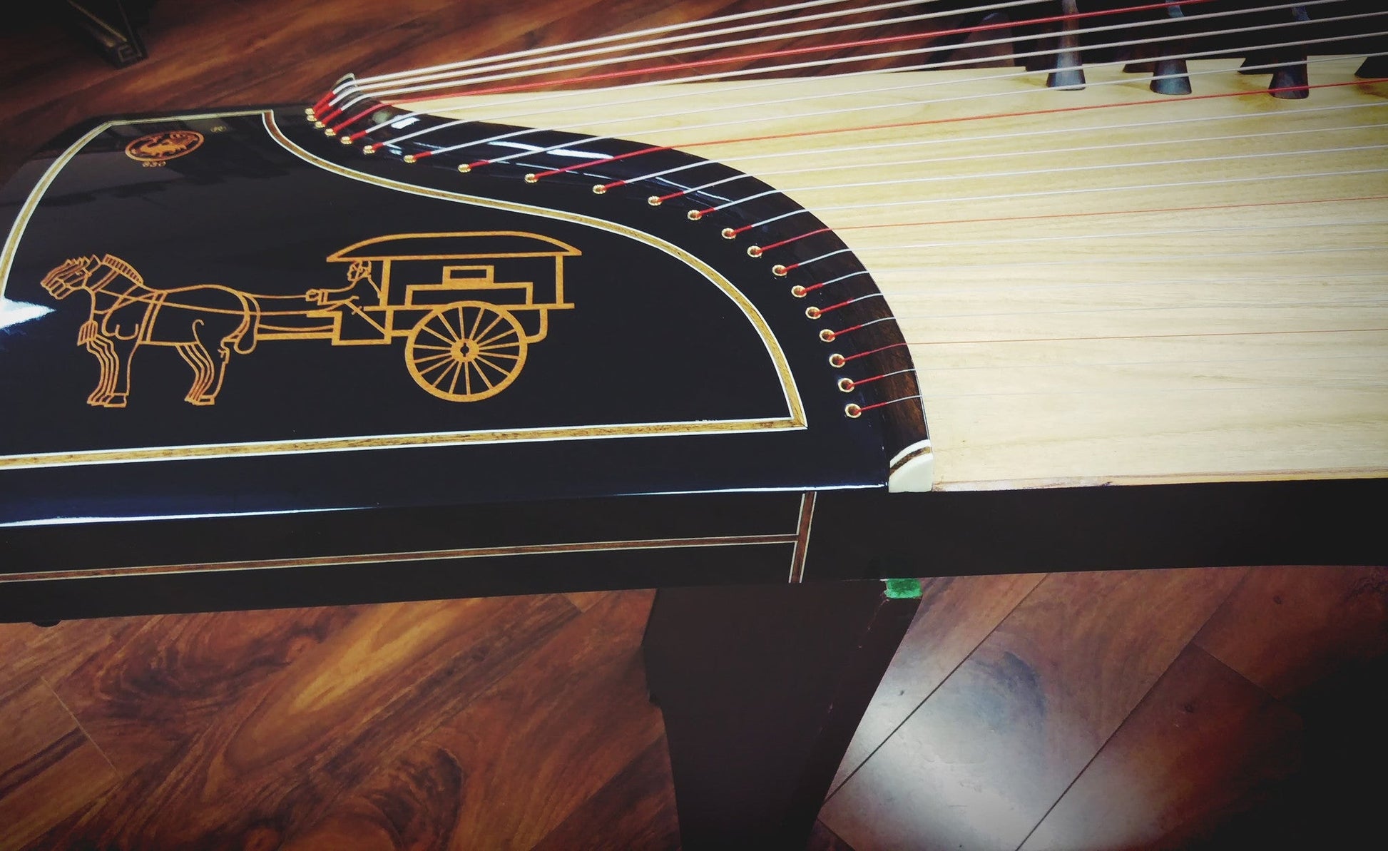 The sound of this instrument is warm and has a robust bass. It is considered by many to be a "grand guzheng."