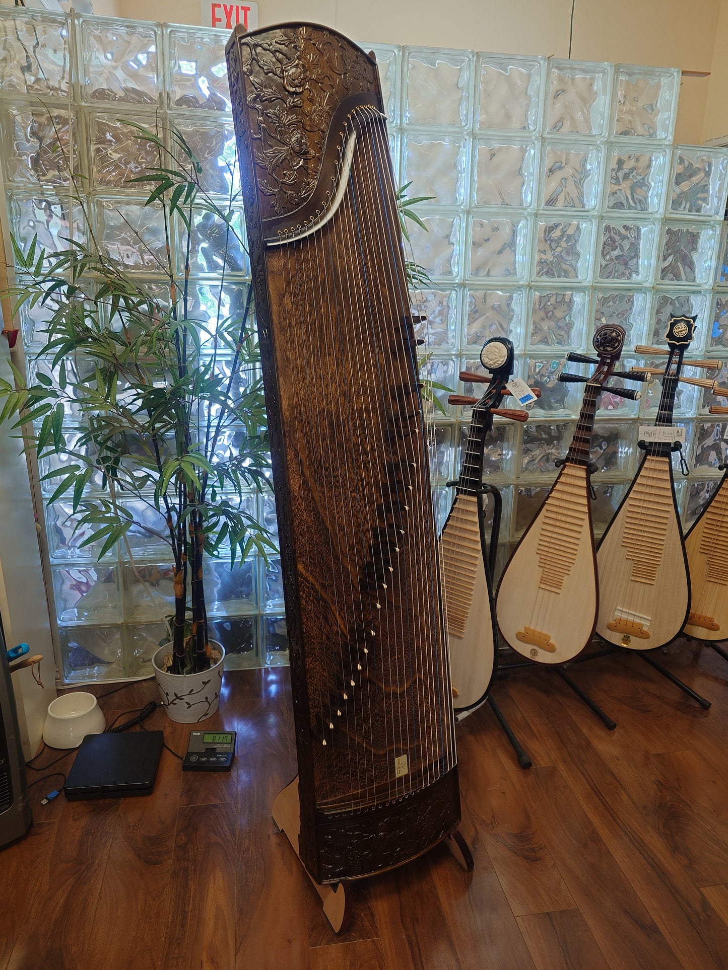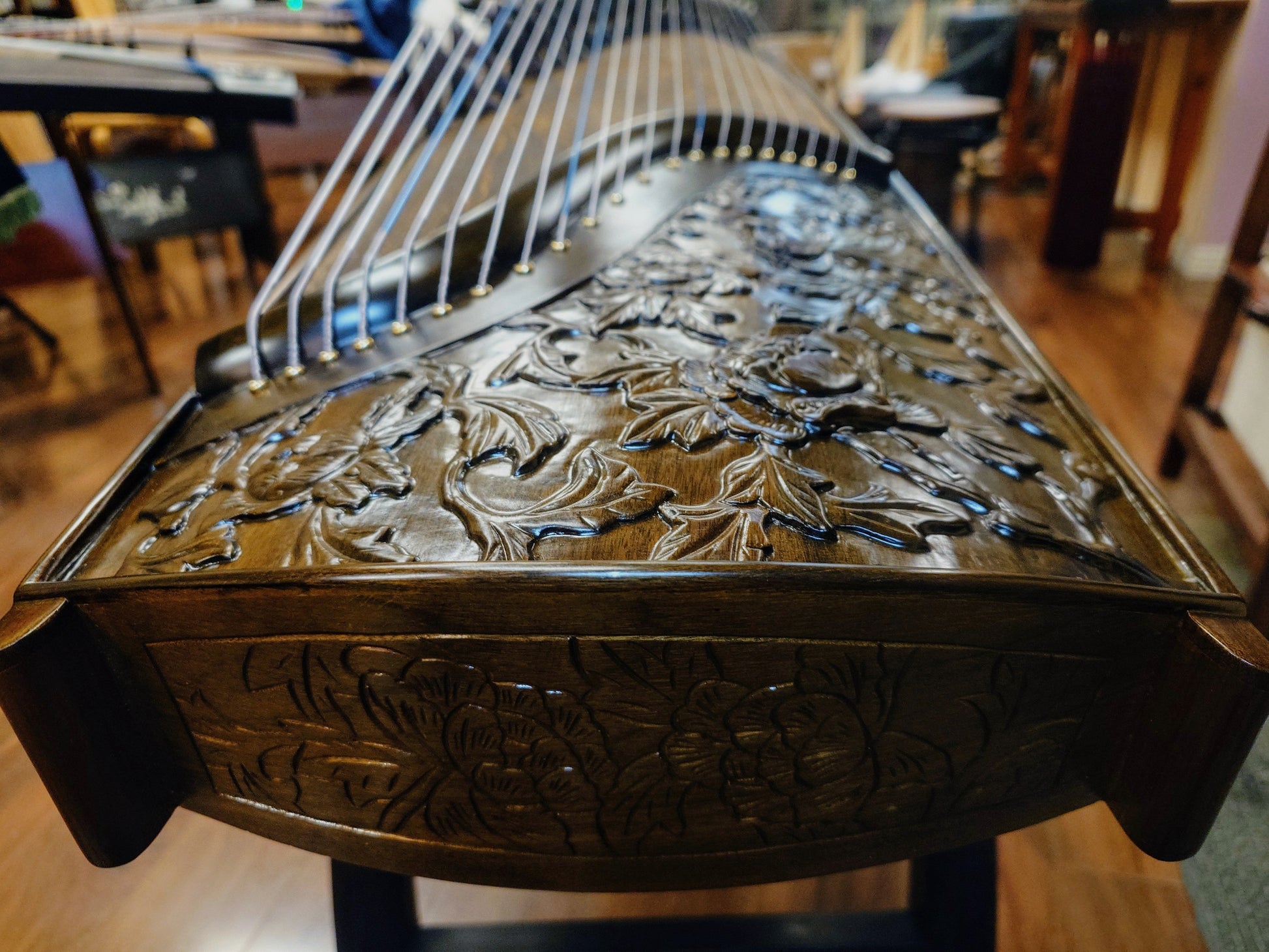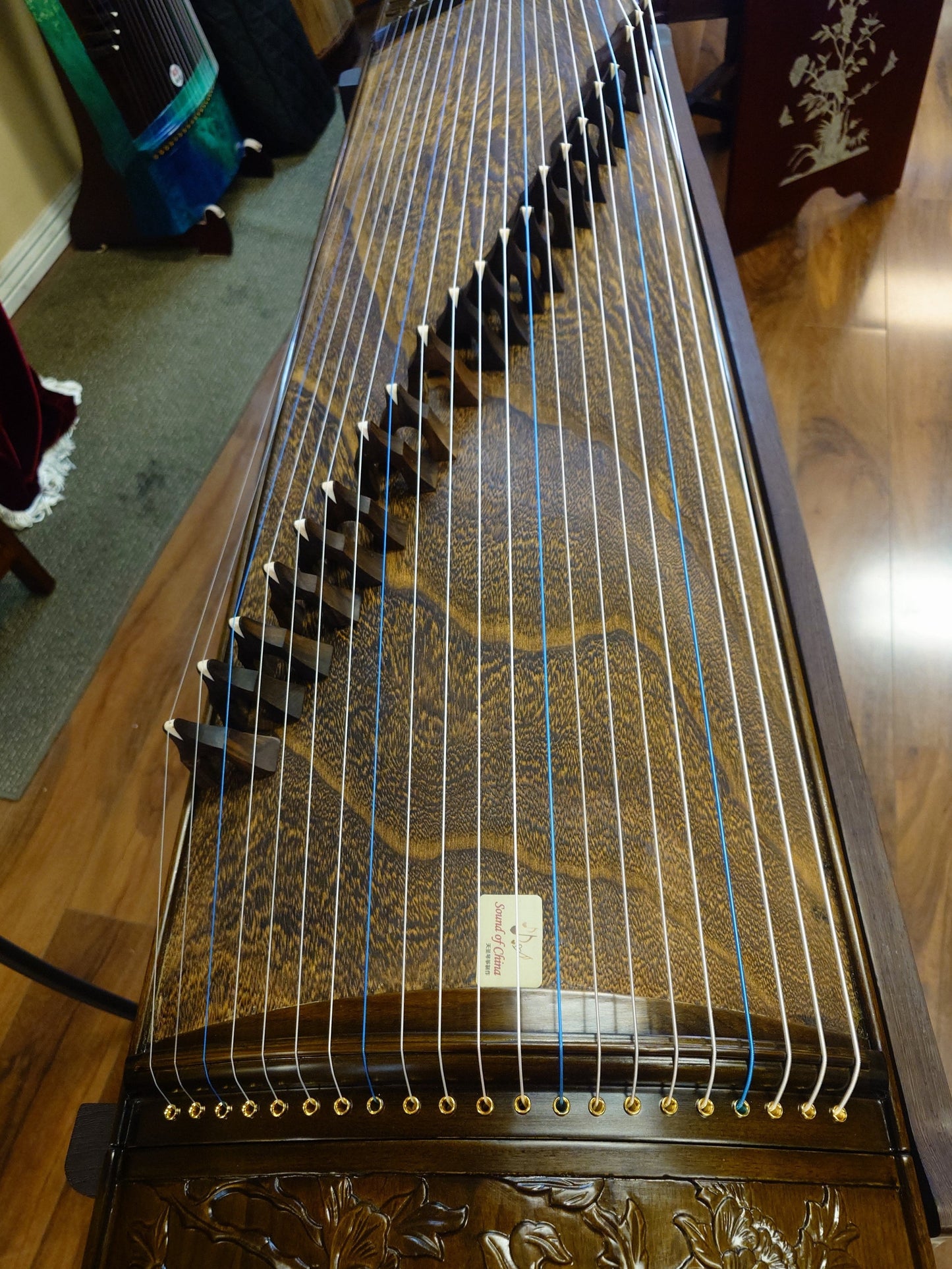 The carved-out sound body provides full volume with a focused, clean sound. The ebony bridges are specifically designed for this guzheng and it is equipped with Lianqing concert B strings for professional playing.