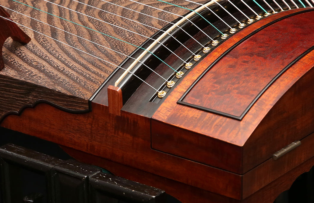 岳山选用整条的印度紫檀,经工匠反复调整弧度入榫装嵌,升华箏音的传导。