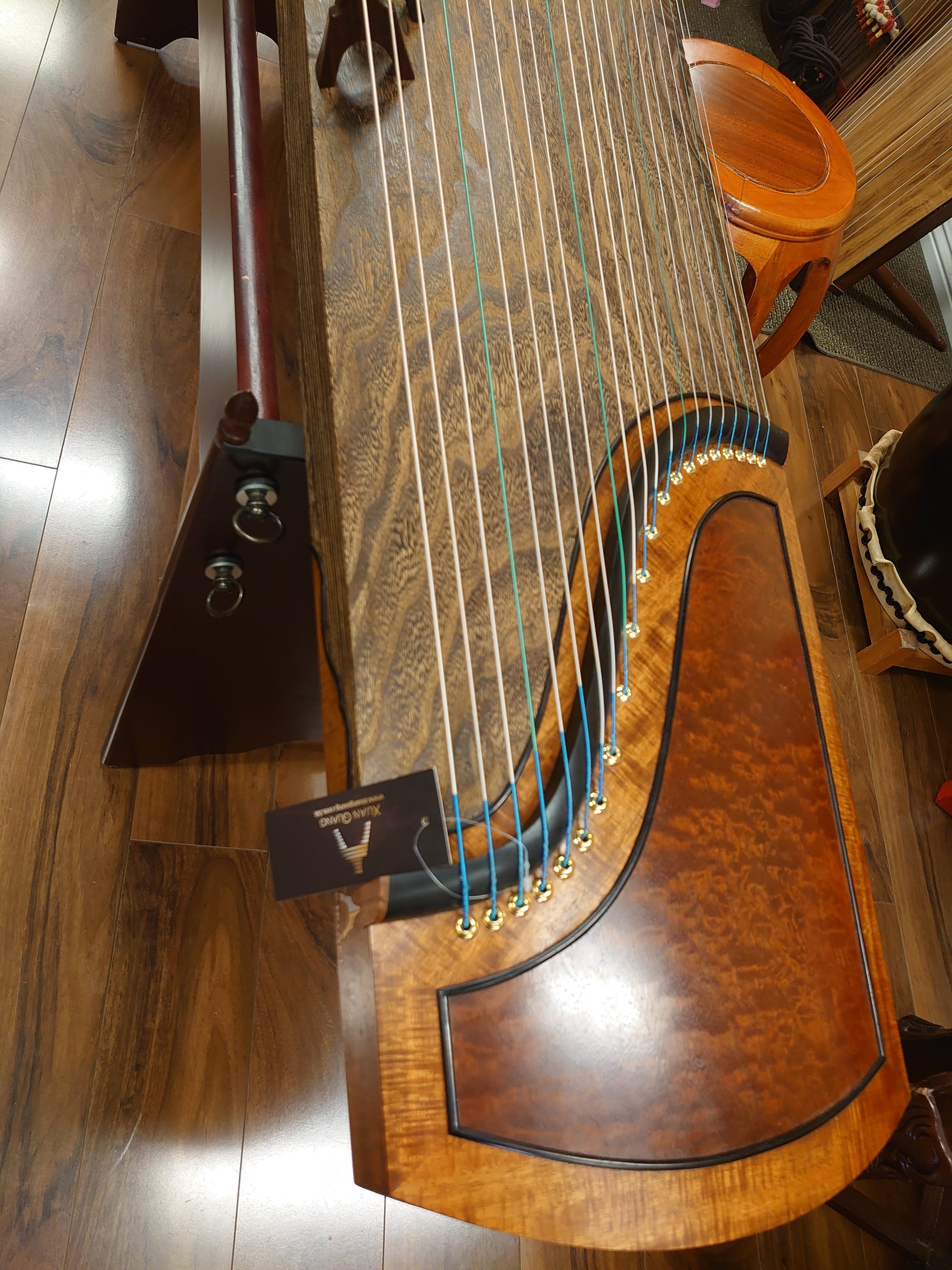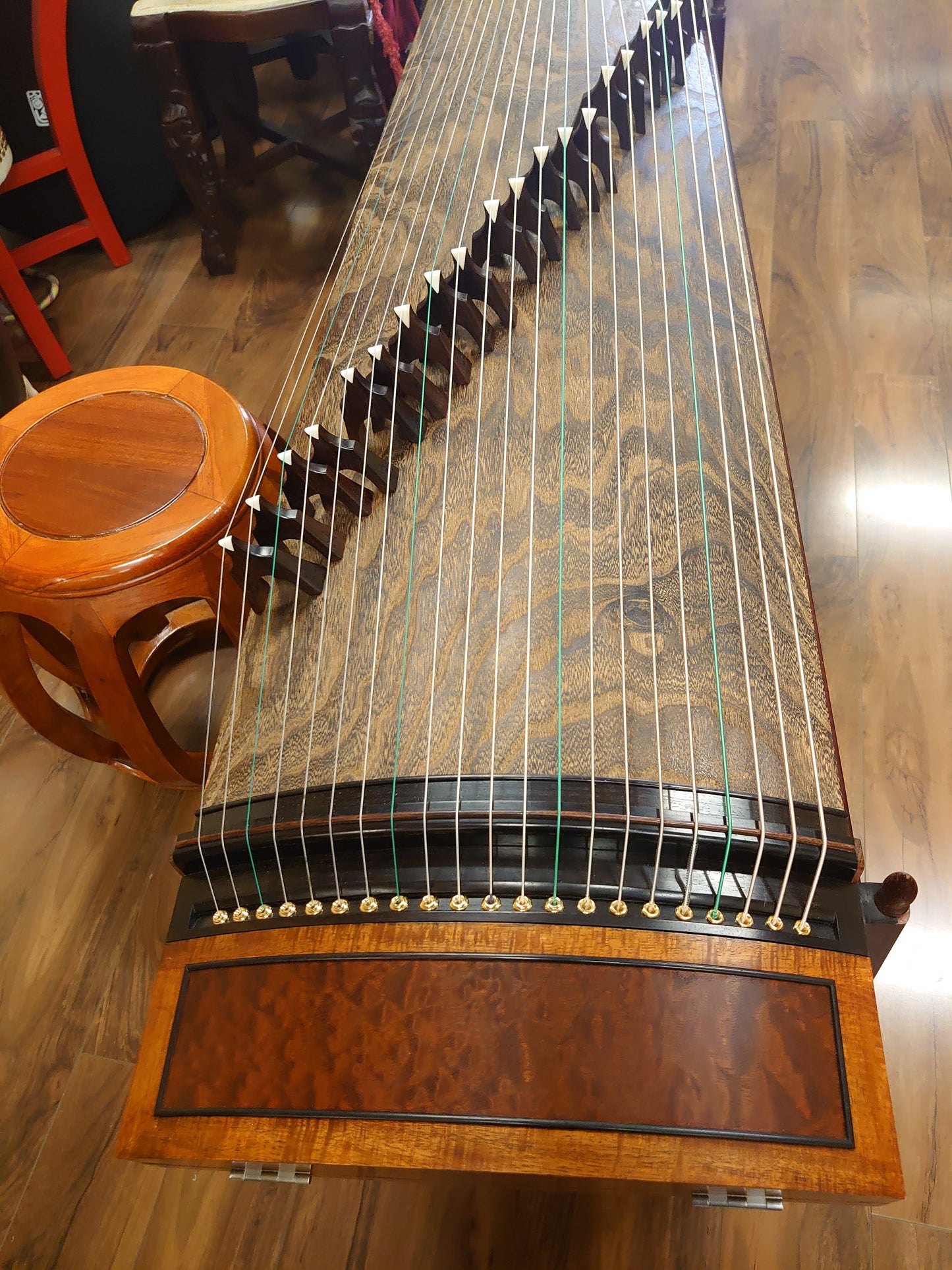 This guzheng is crafted by the renowned Japanese instrument maker Mitsuya Koto, known for their expertise in creating larger kotos. The family has a long tradition of producing string zithers, including the famous 80-string koto for Michio Miyagi in 1929. The design for this guzheng is provided by Zheng Art of Hong Kong.